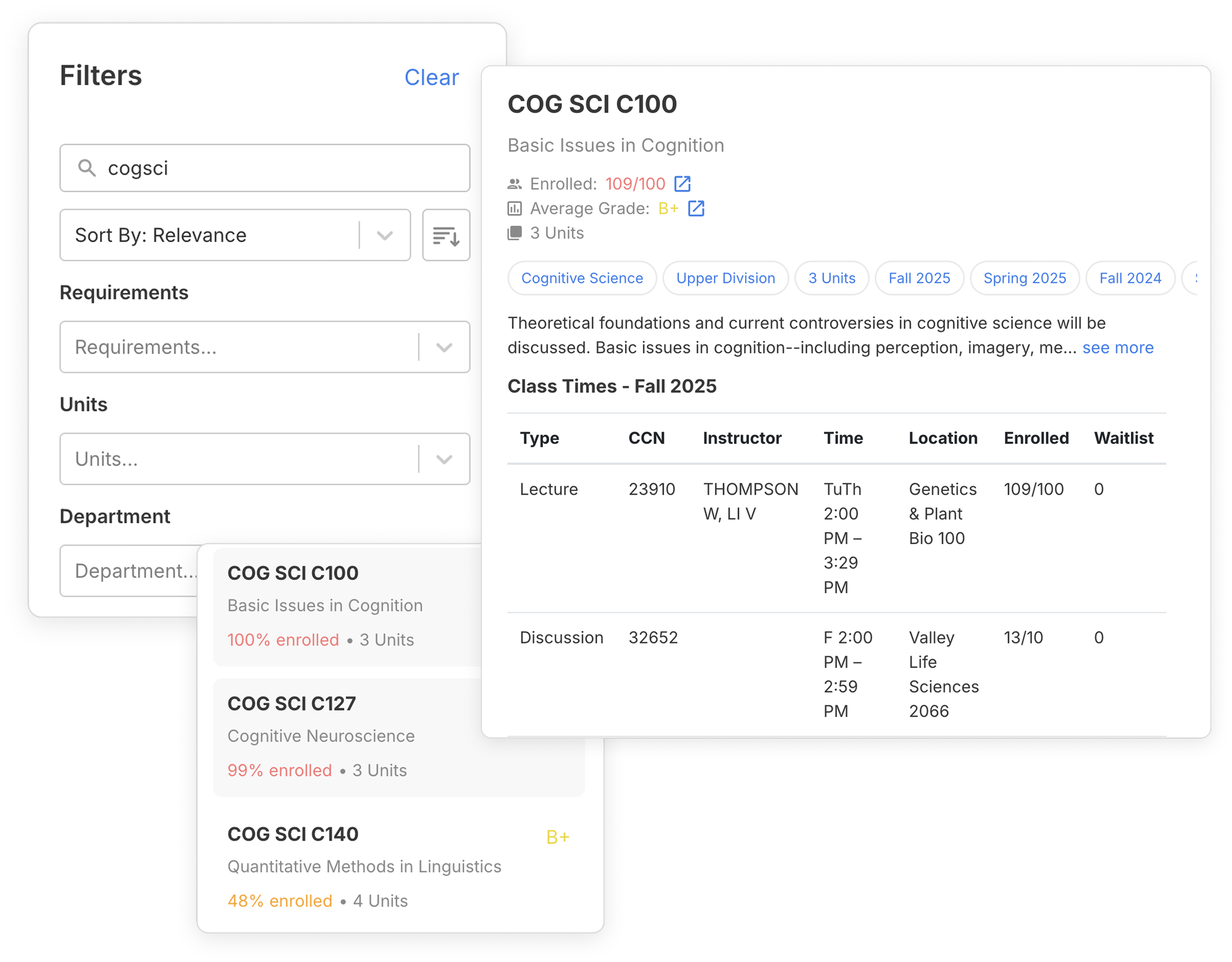 Provided a more intuitive course planning experience than CalCentral (official schedule enrollment site).