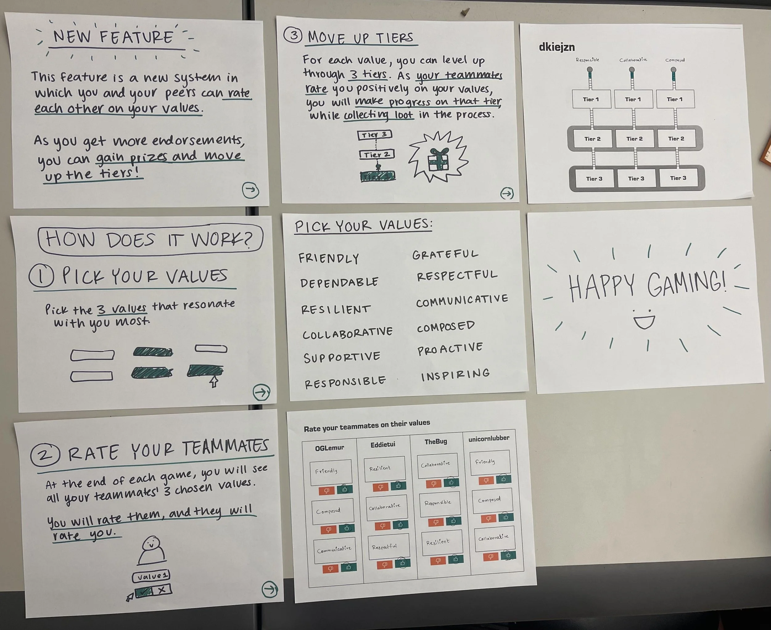 Some players thought about how they could better exhibit their values for their next game. They thought that these features could prove very motivating for gamers to create a more positive environment.